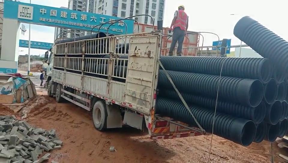 2022年1月11日農(nóng)村污水項(xiàng)目PVC排水管收貨
